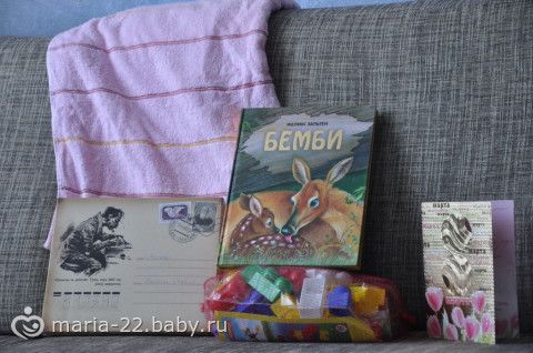 Книга просто очень красочная, Тимошка все время целует зверушек в книге.Настя перегрузила сразу все свои сбережения в копилку.Полотенце сразу пошло в использование, кстати очень мягенькое! И огромное спасибо за лак! Мой цвет! Да еще и Dior)))