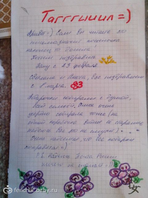 Милли — прошу Марину отправиьть в черный список, ибо ДАРЕНОМУ КОНЮ… мне конечно неприятно читать такие посты но я не первый раз и не первый год участвую а этих акциях и всегда все было хорошо и я отправляла и мне присылали и никогда не было ничего подобного