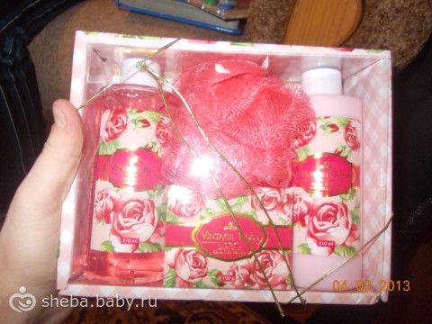 Вкусно пахнуший набор и полотенчико в виде пироженки.