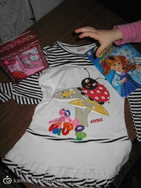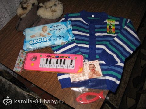 Это для сынишки, спасибо большое, кофточка большая нам на вырост, а прорезователь грызет нравится. Пианинко детской было поломано незнаю наверное повредилось при перевозки. Доча забрала его себе.