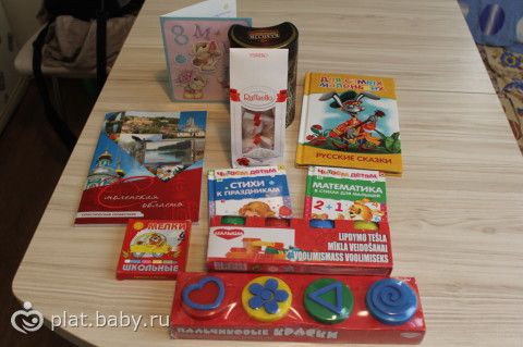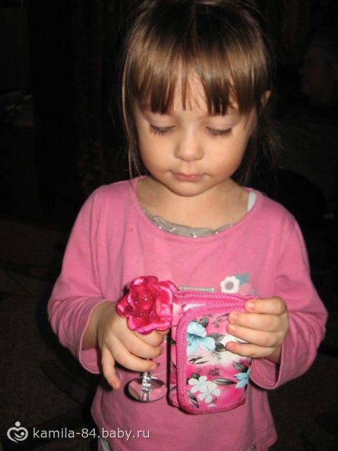 Дочкины подарочки, ей больше всего понравился кошелек, она как раз неделю ходила у бабушки стаскивала, а теперь у нее свой собственный спасибо