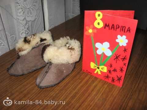 Вот эти тапочка Лена написала что свекр ее сшил специально для Лешика, спасибо приятненько и открыточка сделана руками сыночка Леночки умничка такой.
