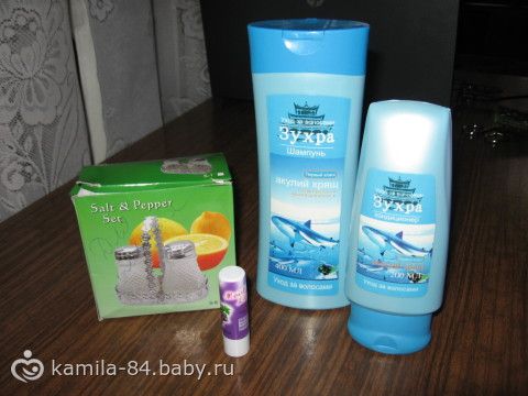 еще один подарочек для меня любимой ))) шампунь, бальзам и косметичка