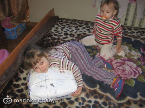 Бегом бежали на почту за ней))))Всю дорогу мои шли делили, то что в посылке, не зная, что там!)))