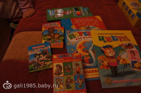 Куча детских книжек-очень вовремя-мы свои уже все перечитали-пересмотрели, и одна большая книга раскрасок(отдельное большое спасибо от Маши-разукрашивать-это наше любимое дело-и оттуда очень удобно перерисовывать)