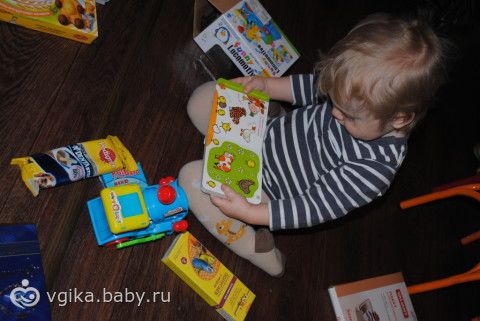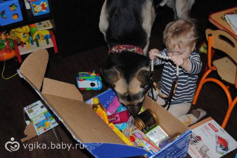 Мягкая игрушка, собачка(от нее в восторге больше я, чем сын, он ее почему то боится, но пару раз в руки конечно же взял)))))