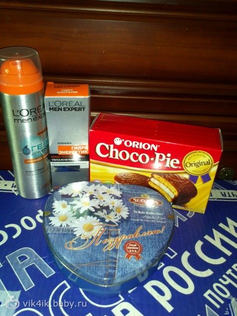 Гель для бритья, кремиу увлажнялочка, чаёк и тоже вкусняшка=))