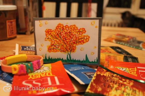 ну просто огромное количество различных чаев и фруктовых/травяных напитков!!! Свечка, очень красивая, в ней воск скатан так необычно!!! ну и вкусняшки :))))) И открытка, сделанная своими руками!!! Нам очень приятно!!!!