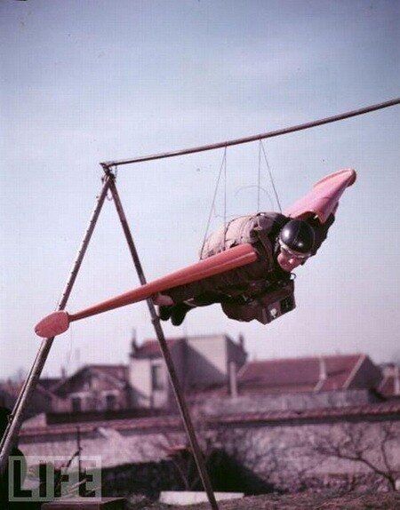 Костюм птицы (1955 год). Впоследствии создатель костюма разбился, выпрыгнув в нем из самолета.