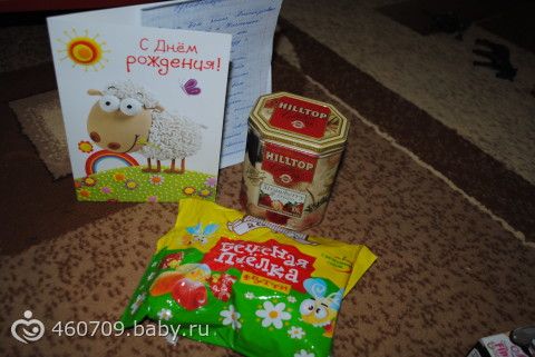 вот она наша красотка-посылочка! у нас 2 сент к тому же ДР у малявки, открыточка поздравительнаядалее для меня набор кремиков для рук