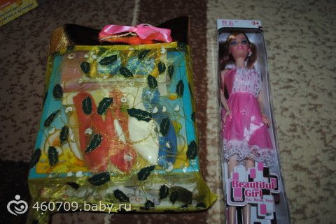 теперь подарочки для нашей малявки:Лялю пока припрятала, а то у нас тяга головы куклам отрывать)) эту красотку не дам в обиду, подрастёт доча-получит)