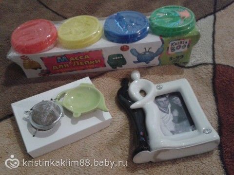 Мы как раз не давно начали смотреть мультик про Лунтика и сразу его узнали, когда он вылез из коробочки))) спим с ним)))Пластилинчик наш))) Огромные баночки) Сеточка классная, чай зелёный буду заваривать (у меня его не пьёт дома)))) Это наша третья общая фотка с мужем в рамочке за семь лет совместной жизни))) Просто супер, стразики… всё как я люблю)))) мужу тоже очень понравилась, отдельная благодарность))))