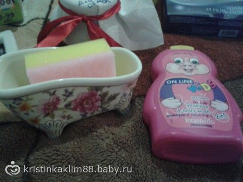 Ванночка для мачалочки))) Ниразу такую не видела, очень оригинально))) И малышку нашему в душик шампунь с ароматом лимонада)))