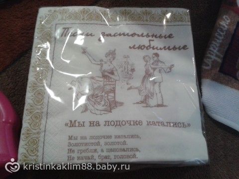 Салфетки оставлю на праздник, таких не видела ни разу))) Прикольные) на каждой песенка)