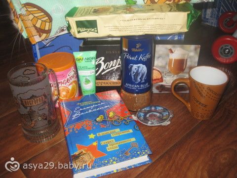 Далее мы с папой:кружка пивная (красивая!!!), магнитик, кружка для кофе, кофе, крем для рук (всегда нужная вещь), книжка Е.Вильмонт (супер автор, были времена я ей зачитывалась взахлеб, а потом как то времени не стало что то читать