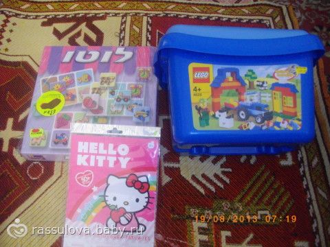 Это подарочки для Лизуни (младшей) набор Лего, татушки (мы, разве что их еще на попу не наклеили), настольная игра