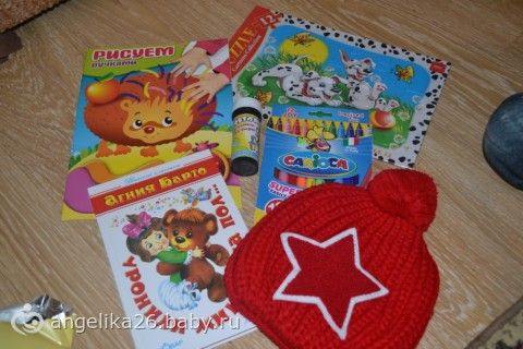 Тепленькая шапочка, книжки, фломастеры, мыльные пузыри и пазл. Ростюшик доволен!!!