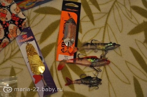 Но какое было удивление мужа, когда ему достались его подарки.Разные рыболовные штучки! А еще больше это его порадовала, потому что мы ехали в рыболовный магазин именно за ними!!! Не поверите! Он сегодня как раз уезжает на рыбалку в Астрахань! Вот так вы нас прочувствовали)))