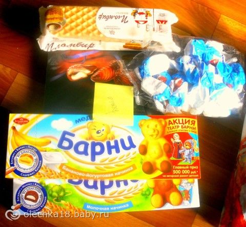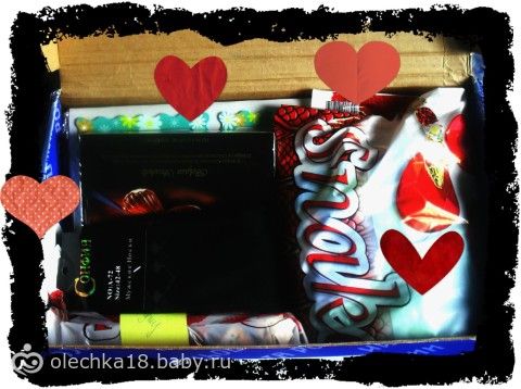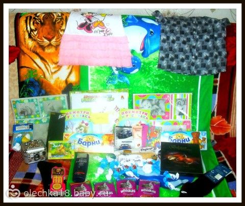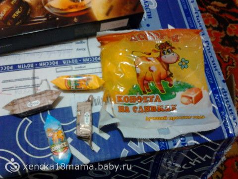 Оленька из калининграда (я не определила кто именно) я получила твою посылочку. Челюсти с мужем подсобрали маленько (сынок у бабушки пока не видел подарочков), конфеты почти съели почти сразу))))) все сфоткали отчетик будет сегодня затрва обязательно — сейчас за сыночком едем потом по магазинам, не знаю какая я буду вечером. Заранее СПАСИБИЩЕ ОГРОМНОЕ за за… я даже слов не могу подобрать… за ПРАЗДНИК!!!!!!!