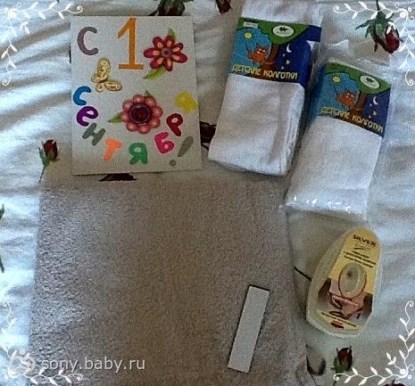 Обеим девочкам белые колготки, губка для обуви, получилась прям кстати, полотенце, магниты с липкой стороной и конечно же замечательная открыточка