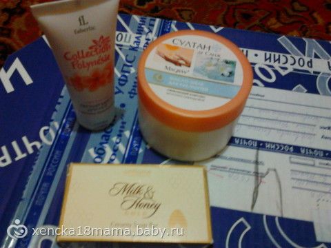 крем для рук, мыло, крем для ног)спасибо огромное нашей дарительнице)))нам все очень понравилось)))