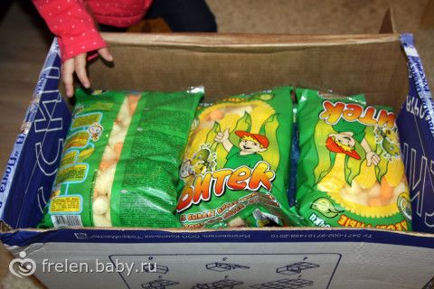 Первое, что мы увидели — это кукурузные палочки, сладенькие