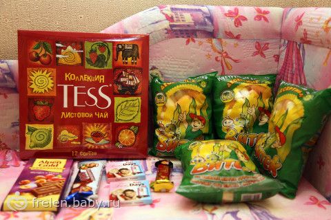 Ну и завершают нашу посылочку вкусняшки и обалденный набор чая (это моя слабость), вечером будем пробовать!