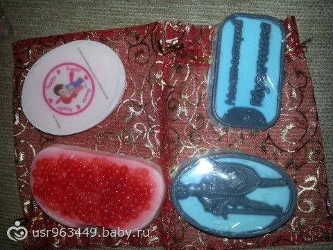 Дарительница наша оказалась рукодельницей, нам с мужем она заготовила по 2 мыла ручной работы.