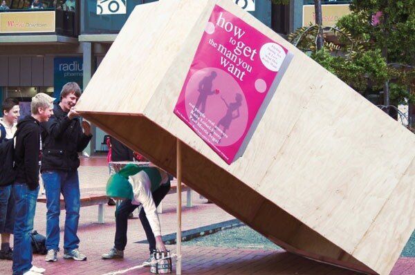 Лекарство от блох. наклейка на полу в торговом центре (люди – живые).