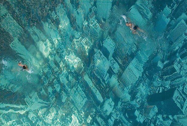 Наклейка на дно бассейна реклама сайта, посвященного борьбе с глобальным потеплением.