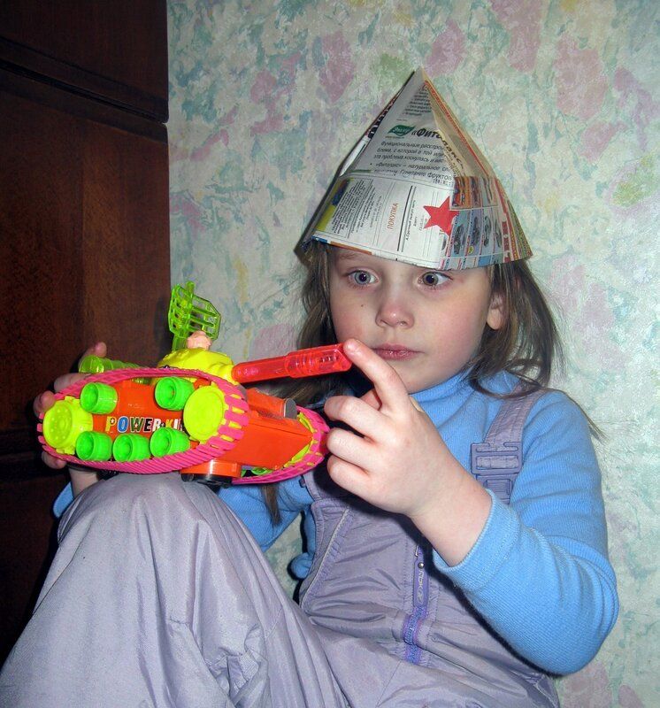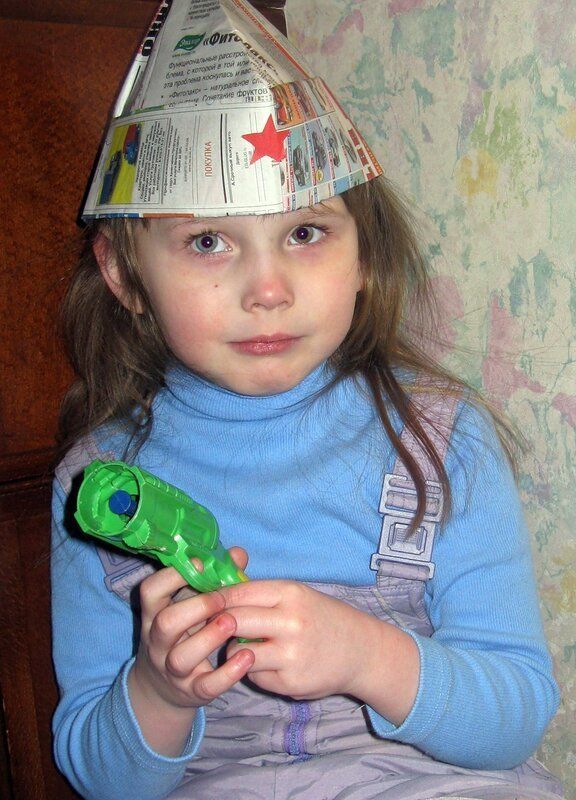 Инеса принесла из детского сада пилотку, сделанную из газетного листа.