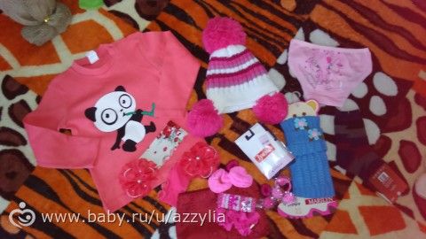 Как я написала выше это колготочки, носочки теплые, крутые и модные гетры, трусики, шапочка, смешная кофточка с пандой (отложена в сад)))и в косметичке куча резиночек и обалденные повязочки на голову