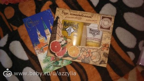 и детская соль для ванныДля меня был набор с гелем для душа, мылком и вкусный чаек (обожаю такие), спасибо!!!