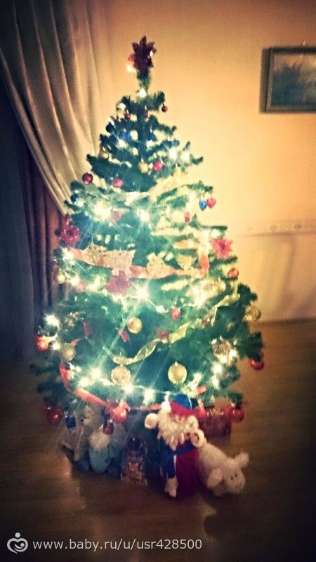 . На отдельное фото не получалось сфотать, фотка вечно смазанная получалась (его видно на общей, около деда мороза весит небольшой белый), мучать не стала… занял почетное место на елке))))