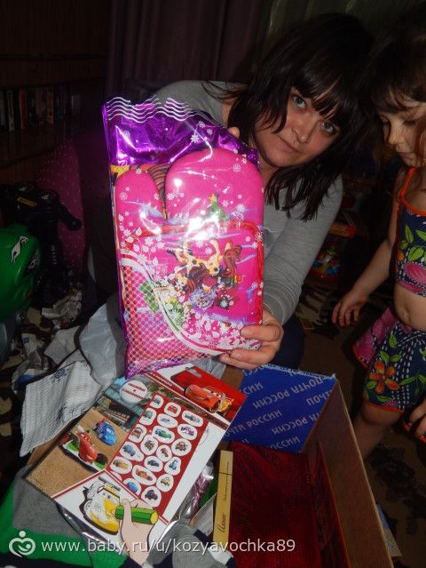 Получили мы посылочку новогоднюю уже после праздника и я так больше люблю=) вроде основной праздник прошел, сюрпризы уже все раскрыты, а тут на тебе и снова праздник в дом пришел=) Утром позвонили сообщили об извещении и к вечеру муж уже мчался с подарочками домой.