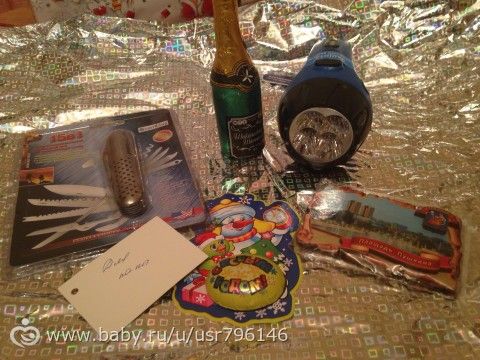 А теперь подарки для папы) Папа наш в восторге!!! Мужской Набор — такое он любит( гель, шампунь, мыло). Фонарик,магнитик, новогодние конфетки и универсальный нож 15 в 1