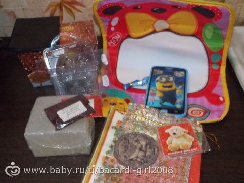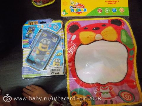 тут уже видно как мелкие ручонки к подаркам тянутся))))это интерактивный телефончик и коврик для рисования водой)))уже опробовали-малышне очень нравится(а я как раз пару недель назад коврик им присматривала, так что угадали мои мысли видимо, что уже не первый раз случается)))))