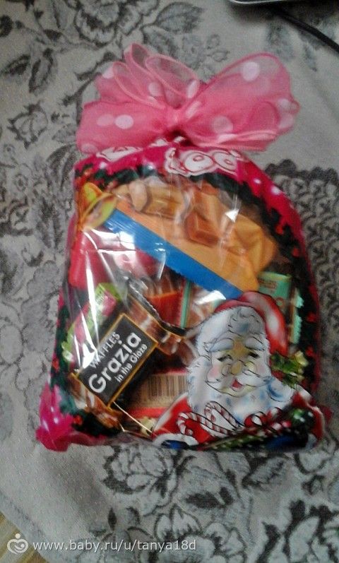 Рада что понравилась посылочка. Про краски не знаю, я просто брала обычные для своей. А тут увидела со штампами. Если честно, не помню чем моя доча интересовалась в возрасте 8-9 мес, поэтому водные рисунки взяла. На мешочке с конфетами — бантик (заколка) для Арины.