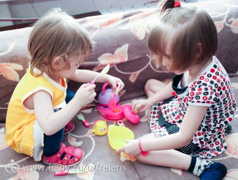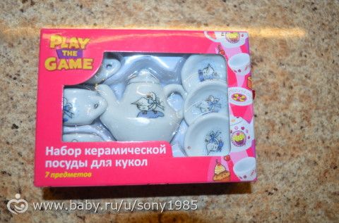 Еще для девчонок был набор посуды, они принялись с ним сразу играть: