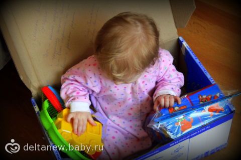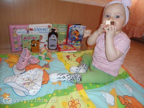 уже даже успела поиграть неваляшкой и облизать крокодила с черепахой.