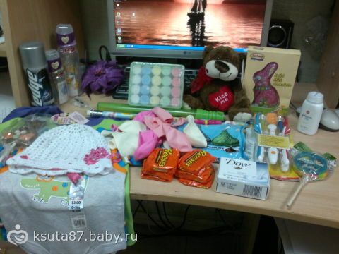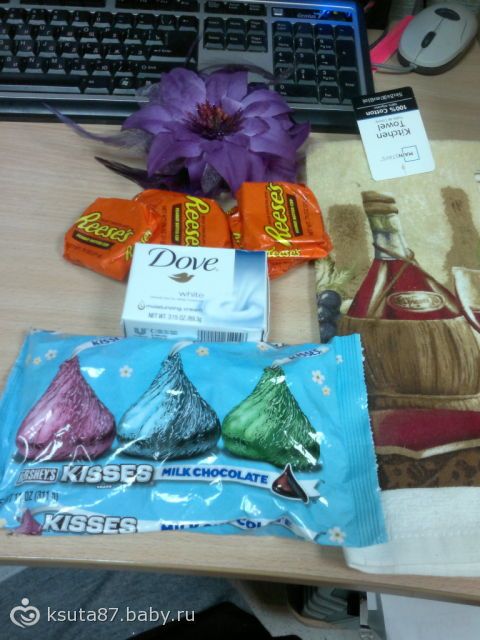 полотенечко, заколку, мыло, вкусняшки-их уже почти нет!!!