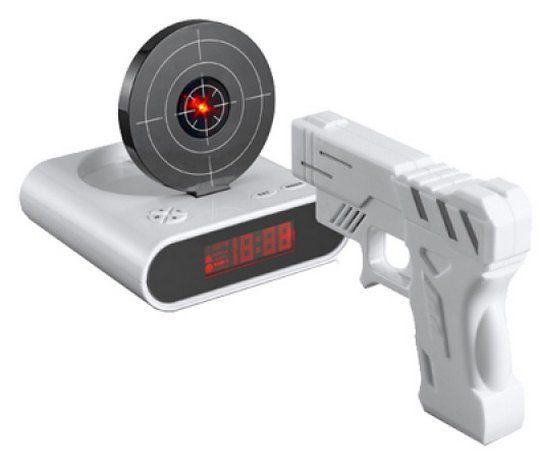 29. Будильник с мишенью. Специально для сонь. Будильник не выключится до тех пор, пока вы не попадете из лазерного пистолета в мишень