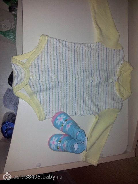 в закладки ))) в тумбе это все так мило лежит ))) уменя если в пакет сложить то баулище получиться ))) я носков аж 4 пары приготовила и 2 царапк ляле и 3 чепчика ))) так все кроме бутылочки и воды и соски и носков у меня готово ))) вот думаю утюг для волос потом к выписке ??? че он мне в первые дни не пригодиться ))) 3 полотенца а салфетки еще не купила ))) и так вроде все )))