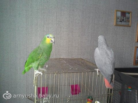 а мы отдали попугая потому что у ребенка аллергия началась… мне и педиатр сказала что попугай и новорожденные не особо совместимы… так что смотрите по ребенку… у нас сопли и красные глаза были… как только отдали все прошло...