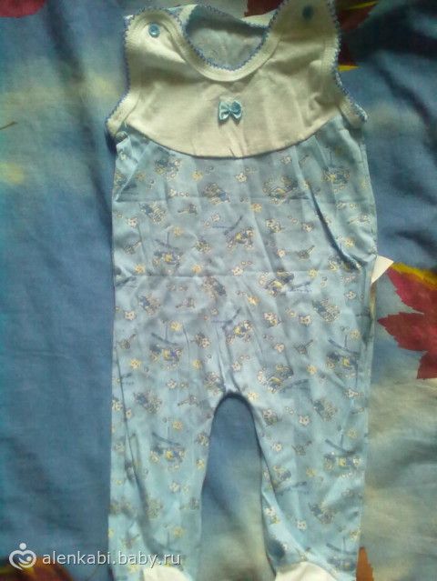 1. Песочник размер/рост 40/62, хлопок 100%. Мне безумно нравится!И неважно, что на нем девочка!