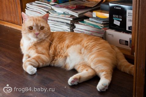 Мы купили на моём 6 месяце беременности рыженького шотландского кота:) Вырос огромный, потрясающий кот!:) Ладит со всеми домочадцами. Не агрессивный.