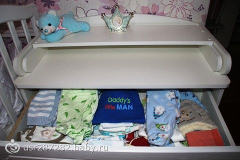 ну и собственно наш комодик! в первом ящичке одежда-шапочки, носочки и прочее