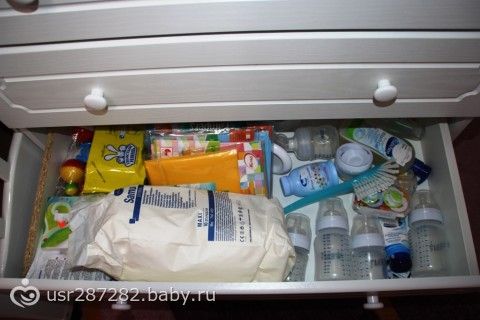 третий шкафчик соски, бутыльки, клеенки и прочая мелочь)