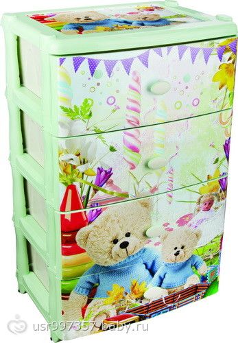 у нас не с дет. рисунком. удобный. но веще не храним. книги, памперы, карандаши и пр.
