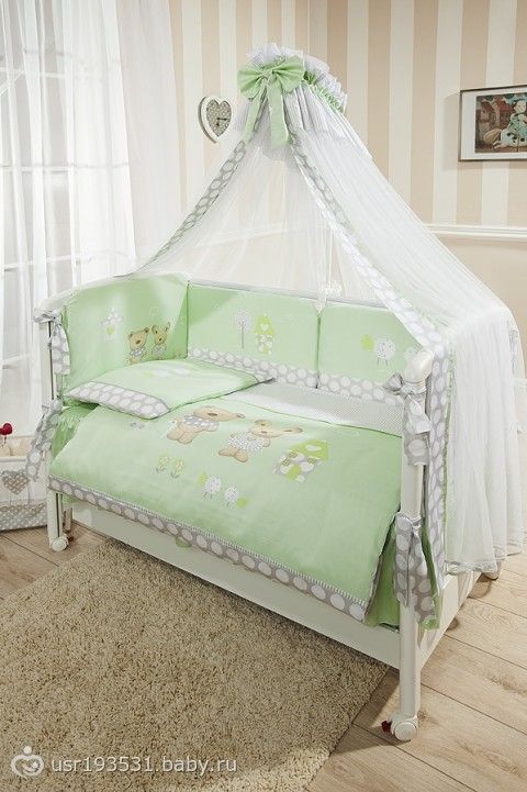 Хотела именно его, качество супер: сатин, чехлы на бортах съемные, бортики двухсторонние, простынь с юбочкой. Как нарядим кроватку покажу в живую)